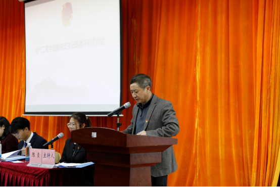 在会上,电气工程学院党总支书记胡贵平代表全院师生向大会的召开表示了热烈的祝贺,并对即将产生的新一届的团委以及学生会干部提出了希望和要求。希望新一届团学干部始终秉持笃志弘毅,止于至善的精神追求,认真落实学校团代会工作部署和要求,强化政治理论学习,不断提高政治理论水平;志存高远,不断提高为师生服务的能力;敢于担当,以实际行动为同学服好务;带领全院团员青年,开拓进取、奋发有为,为学校特色鲜明高水平高职院校奋斗目标的早日实现作出新贡献,以优异成绩迎接党的二十大的召开。