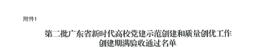 根据《中共广东省委教育工委关于公布新时代高校党建示范创建和质量创优工作及高校“双带头人”教师党支部书记工作室验收评估结果的通知》(粤教工委组函[2022]3号),我校电气工程学院党总支顺利通过广东省新时代高校党建“双创”标杆院系验收。